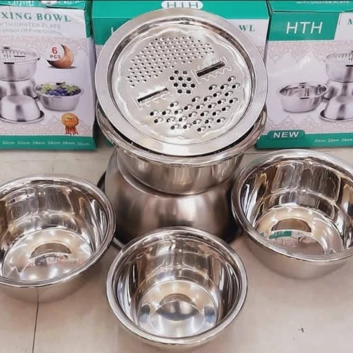 سرویس کاسه استیل (لگن) با درب و رنده.
