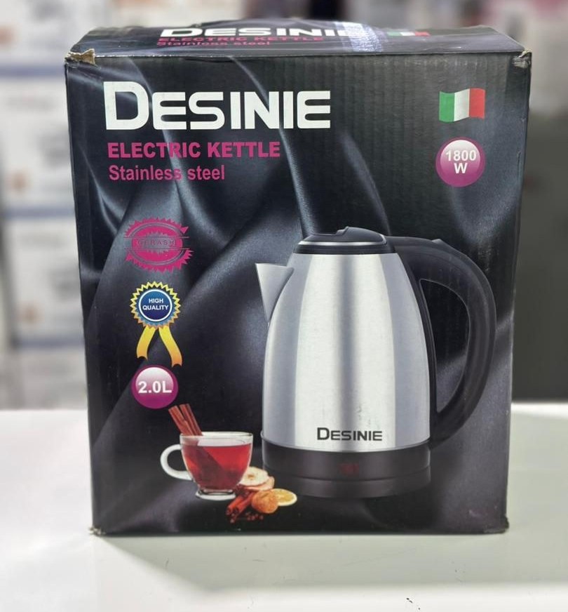 کتری برقی دسینی ۲ لیتری استیل ضدزنگ با توان ۱۸۰۰ وات، گزینهای عالی برای آشپزخانههای مدرن است. این کتری برقی دسینی با طراحی شیک، سرعت بالا و سیستم خاموشی خودکار، آب را در کمترین زمان برای تهیه چای و قهوه آماده میکند.